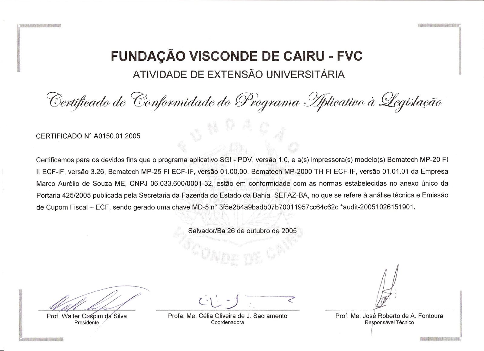 da Bahia ( em 2005 ).