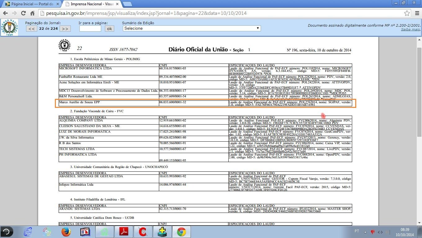 no Diário Oficial da União ( outubro de 2014 )